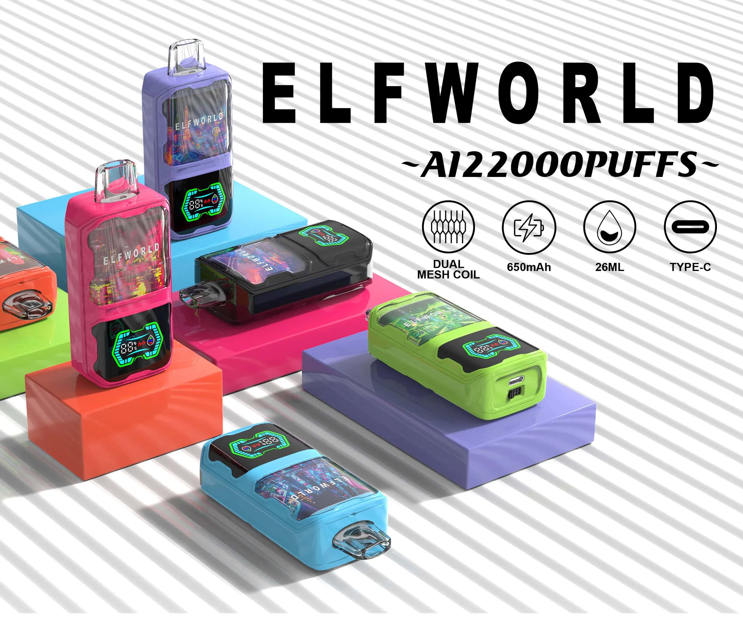 ELFWORLD AI 22k Puff Disposable Vape E Cigarette ELF WORLD Desechable Vaper Tornado Electronic Cigarette