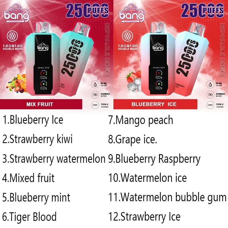 With the Bang 25000 Puffs Disposable Vape, you get a high-capacity, easy-to-use device that combines convenience with superior performance. Whether you’re a beginner or an experienced vaper, this device is designed to meet your needs and exceed your expectations. Choose Bang 25000 for a reliable, enjoyable, and customizable vaping experience.