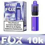 Puff Vape JNR Fox 10000 Puffs: Massive 10K puffs! Features 2ml prefilled pod + 10ml refill bottle & refillable pod, 800mAh Type-C rechargeable battery, colorful breathing light, 2% Nicotine (20mg/ml), TPD certified. Long-lasting disposable vape