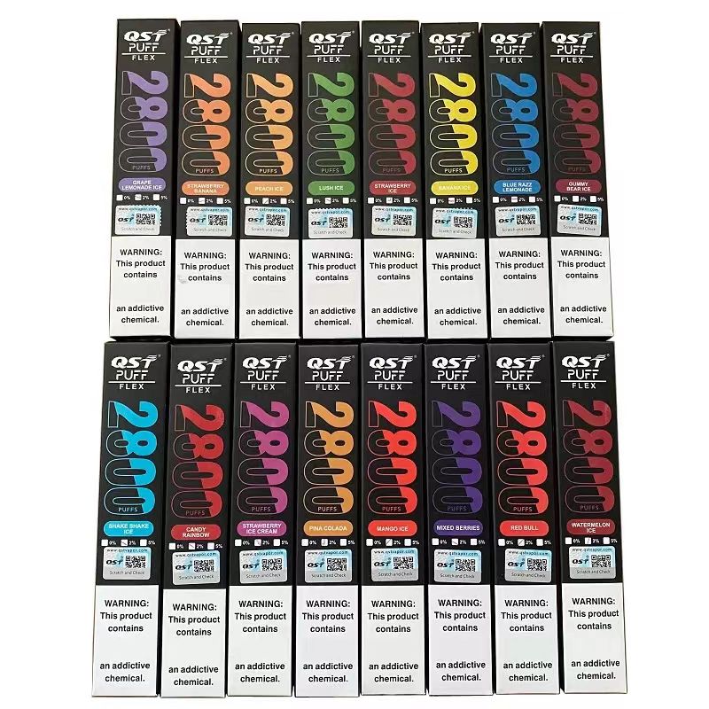 QST Puff Flex 2800 Disposable Vape Pen. With a spacious 12ml E-Liquid capacity and a robust 550mAh battery, this sleek device ensures prolonged enjoyment.