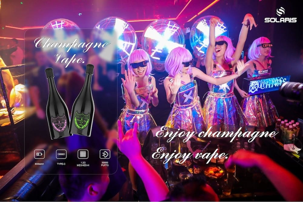 Experience the Solaris Champagne 30k puffs disposable vape. Enjoy 10 flavors, 20mL e-liquid, & 2% nicotine. Features a 1.2ohm mesh coil, 600mAh battery, & Type-C charging. Buy now for extended vaping sessions.