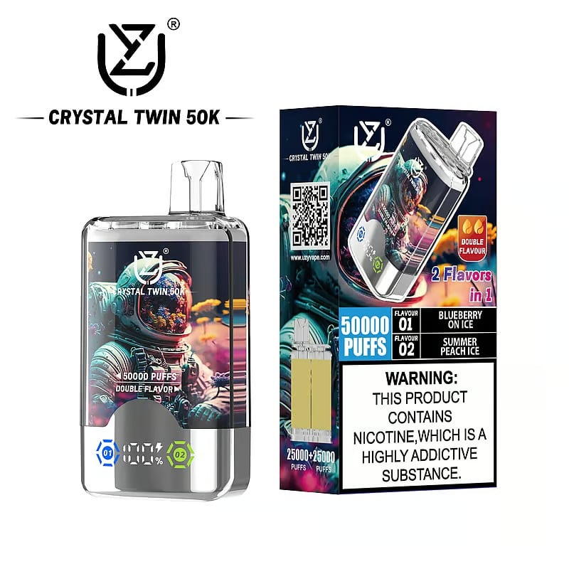 The ultimate dual-flavor vape with UZY Crystal Twin 50K. Enjoy two distinct tastes in one smart device featuring a crystal-clear tank and rechargeable battery.