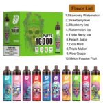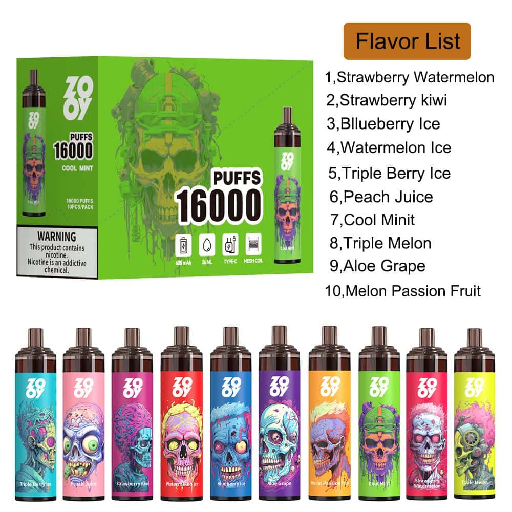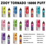 ZOOY Tornado 16000 is a disposable vape device with airflow control and rechargeable functionality. It has a 26ml tank with 0/2/3/5% nicotine salt e-juice, providing up to 16000 puffs. There are 12 flavors to choose from, and the airflow control allows you to customize your vaping experience. The device also features a rechargeable Type-C port at the bottom, ensuring you don’t waste any e-juice in the tank.